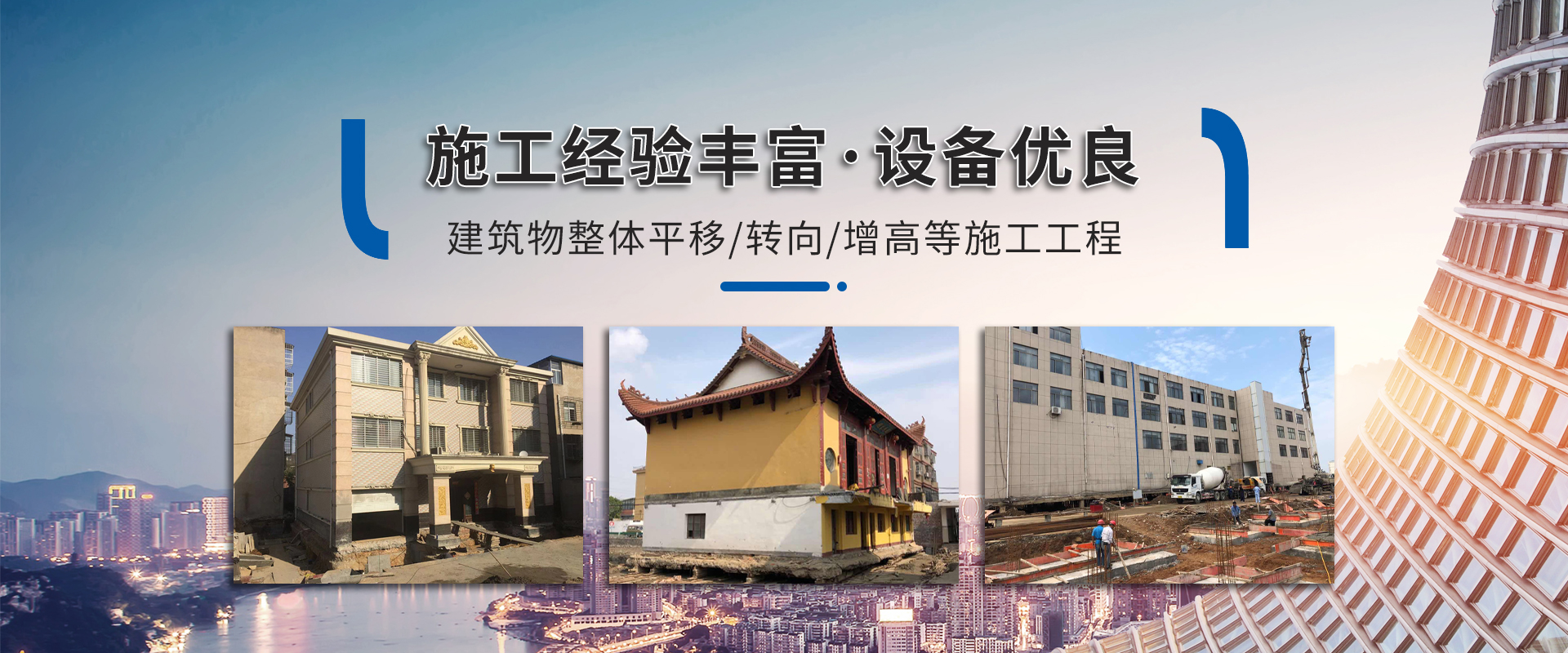 主營:房屋平移/轉向/移位/校準/升降等項目。